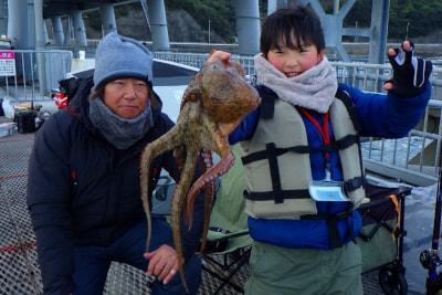 1.5`のマダコが釣れました! 展望デッキ下(立ち釣り席)・大阪側 タコエギ・豚バラ巻きにて そうた君ファミリー |