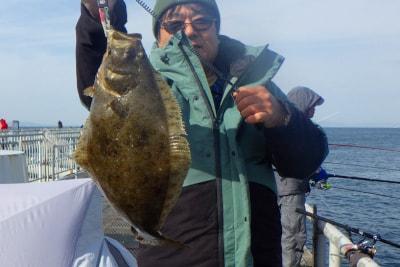 ヒラメ70aが釣れました! 中央付近・和歌山側 のませ釣り・小アジにて