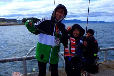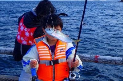今日は朝から北風が強く吹いています。お天気はいいですが、少しひんやりとしていますね〜!今日も朝から桟橋各所で小アジサイズのマアジが釣れています〜! |