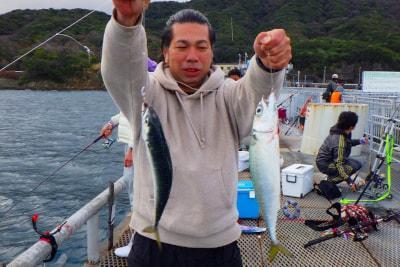 42aのマサバがダブルで釣れました! 先端手前・大阪側 のませサビキにて