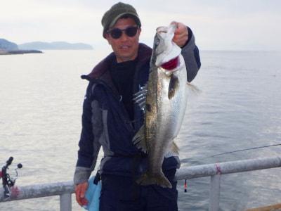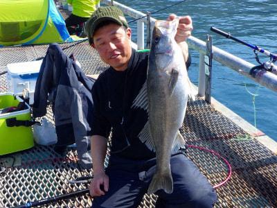スズキ62pが釣れました!先端付近(和歌山側)ウキノマセ釣り(アジ) 中川様 |