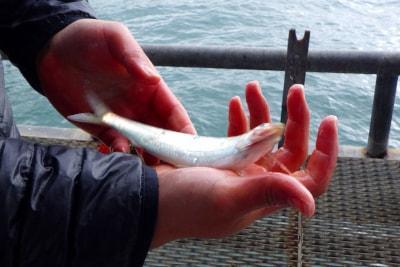 午後からも、展望デッキ下〜立ち釣り席などで、小サバ中心ですが、小アジやイワシも釣れています!