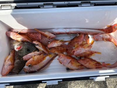 コメント 今日は根魚ジギングに出船、ウネリ高く釣りづらいなかアヤメカサゴ、アマダイ、オニカサゴ、オオモンハタ、マトウダイなどが釣れました。本日は悪コンディションでのご乗船いただきありがとうございました🙇‍♂️