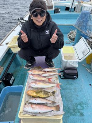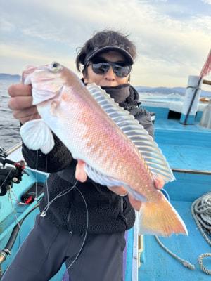 シロアマダイ | 35〜41cm | 3匹 | 天秤 ハリス4号2本針 | アオイソメ、ホタルイカ | |