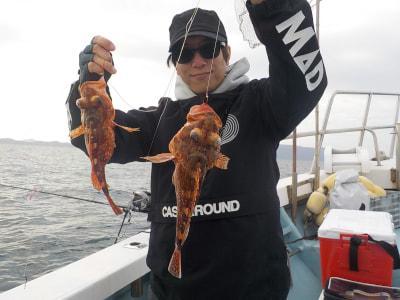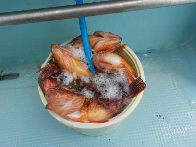 アコウ | 26〜38cm | 12匹 | 2本針胴付きハリス6号オモリ70号 | 活きカタクチイワシ |