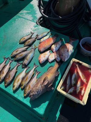 イサギ、チダイ、マダイ、レンコダイ、オオスジハタと色々釣れました。