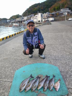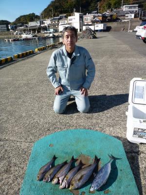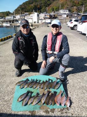沖一文字周辺の刺し網漁期間は来年5月迄あります。漁船の作業時には速やかに仕掛けを回収し作業終了迄お待ちください。 山口さん、五頭さんの釣果 |