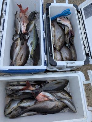 フカセ釣り釣果です!流しやすい上り潮でした昼までは💦【昼から潮風反対アンカー釣り】旬の腹ボテイサキ、青物はメジロ、マダイ塩焼きサイズが釣れました✌5日フカセ釣り2名空き、7日フカセ釣り1名空き、8日フカセ釣り1名空き、10日メダイ、根魚釣り2名空きです…