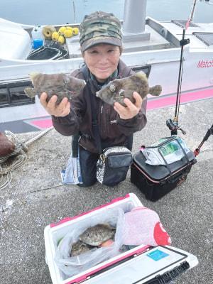 カワハギ | 18〜26cm | 18匹 | 胴付き3本針、重り30号 | 生アサリ | |