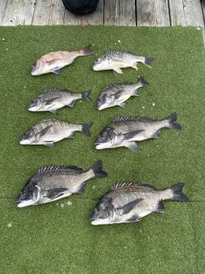 筏●チヌ、キビレ | 32〜45cm | 7匹 | ハリス1.5 針3 錘なし | 沖アミ、コーン、サナギ | |