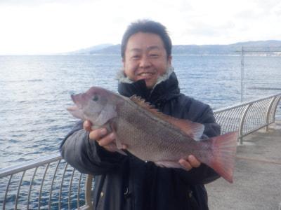 コブダイ 1匹 ウキ釣り 針グレ7号 ハリス3号 オモリ天秤付カゴ12号 竿5.3m 棚4ヒロ シラサエビ