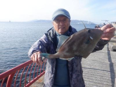 ウマズラハギ 1匹 落し込み 針メバル7号 ハリス1.7号 オモリ10号 竿4.5m 棚底 シラサエビ