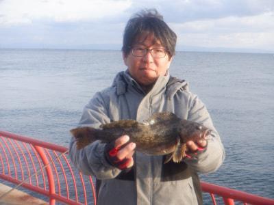 アイナメ 1匹 ウキ釣り 針グレ9号 ハリス3号 オモリ天秤付カゴ8号 竿4.5m 棚5ヒロ シラサエビ
