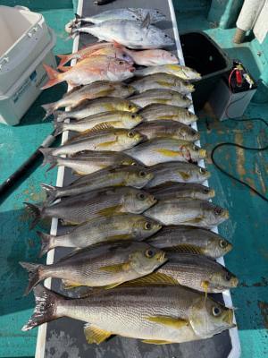 オキアミ五目釣り出船しましたマアジはアタリなったです、小鯛にヤイトあがりました後半イサギ狙いました入れ食い状態でした、お客様の都合で9時30分までの釣行でした、お疲れ様でした!