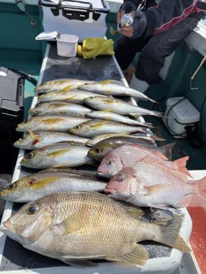 五目釣り出船しました食い渋かったですメイチに小鯛顔見た程度でイサギポツポツでなんとかお土産確保でしたお疲れ様でした!