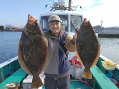 ![]() メガ54pGETの奥田様 | ![]() 肉厚ヒラメ2匹GET! 高田さん | ||