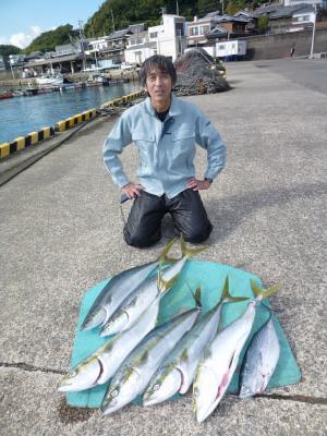 沖一文字外、メジロ、4本、ツムブリ、2本、65〜70cm、ヤイト、1本、48cm、喰わせ飲ませ