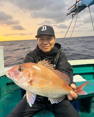 海上早々からやりましたー❗️ 狙い目、待望の食べ頃良型マダイGET⤴️✌️😆