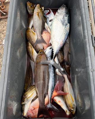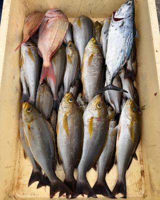 コメント:秋イサギ🍁五目狙いで出船❗️🎣 後半以降上り潮速く釣りづらく、苦戦しましたが、 イサギ他、イサギ仕掛けでマダイ、青物ヤイトカツオ、ヒラソーダなど釣れ、 良型交じり お土産になりました👍😊