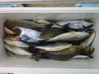 コメント:少しウネリがあって食いも渋かったです。大変よく頑張ってくれました。ちょっとイサギは残念でしたが、それでも良いお土産が出来て良かったですね♪これだけあればお刺身だけでは食べ切れませんので、揚げ物や煮付けに楽しんで頂けると嬉しいです。とは言っても今日の一番の御馳走はお刺身ですので、先ずはもう食べ切れない!と言う程お刺身を沢山楽しんで頂ければと思います。加熱料理に関しては残念ですが美味しい煮付けは今日はグッと我慢して下さいね。今日は新鮮過ぎて加熱料理をすると身がボロボロに崩れて非常に残念な見た目になってしまいます。煮付けは明日か明後日から楽しんで頂ければと思いますが、その為にはお腹の中を綺麗にして水分でビチャビチャにならないようにキッチンペーパーを惜しみなく使って下さい。お腹の中にキッチンペーパーを詰めて、外側もキッチンパーパーでしっかり包んで頂くと余計な水分を吸い取ってくれますので日持ちしますよ。味も余計な水分が抜けた方が美味しいですので、少し手間ですが一手間加えて頂ければと思います。尚、キッチンペーパーで包んだ後にラップも巻いて保存袋に入れて頂ければ完璧です!この手間を加えるとお刺身だけでなく、煮付けや揚げ物も美味しく仕上がりますよ。焼き物に関しても、今日は煮付けと同様に我慢して頂ければと思います。ムニエルも今日はちょっと難しいかもしれませんね。今日の一番の御馳走なお刺身ですので、思う存分美味しいお刺身を沢山楽しんで下さい。それと、下処理をしながら揚げ物用に捌いて冷凍保存をしておく等の工夫をして頂くとお料理をする時に楽ですし揚げ物も沢山楽しめますよ。天ぷらにしても美味しいですし、フライにすると最高の白身魚のフライが楽しめます!イサギは和食に限らず洋食との相性も良いですので、王道のお料理を楽しんだ後は、是非とも色んな味も楽しんでみて下さい。ヤイトガツオ一番のご馳走はお刺身ですが、缶詰風に炊いたり、蒸してホットプレートで表面を軽く焼きながら食べても美味しいですよ。蒸すと骨が簡単に取れますので、ほろ酔い状態でも食べやすいですよ。折角ですので、タルミもお早めに楽しんで下さいね。どうぞ、豪華で楽しい食卓にして良き時間をお過ごし下さいませ。