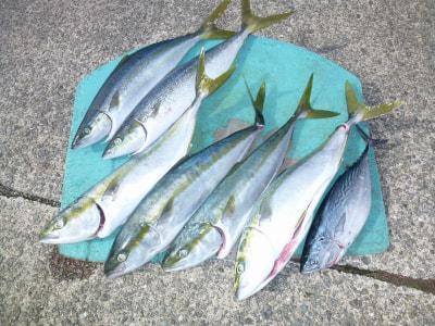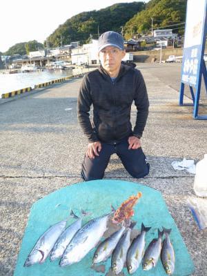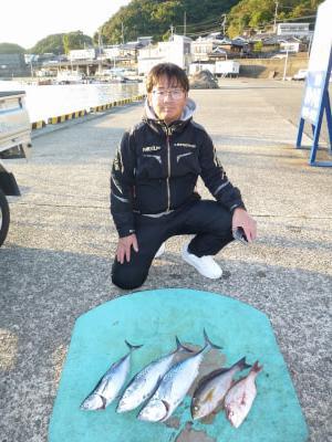 コメント:沖一文字は5時45分出船、神谷一文字、磯の出船時間は電話確認下さい。救命胴衣着用、釣り場ゴミの持ち帰りにご協力下さい。魚よく釣れています。明日も出船予定です。沖一文字で小アジも釣れていました。
