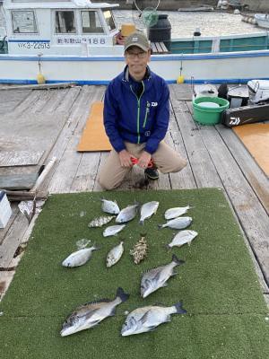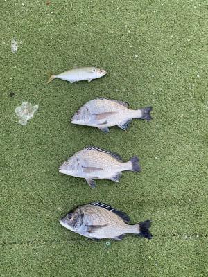 コメント:筏釣り今日北風1日ふいていました。本命全員安打 (^-^)各筏ゴンズイ、アイゴがぽろぽろ食いついてきます。注意してください又、オキアミやアミエビの使い方に注意してください。 当店では、箱入りヌカダンゴ類の持込、使用は禁止としております。