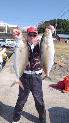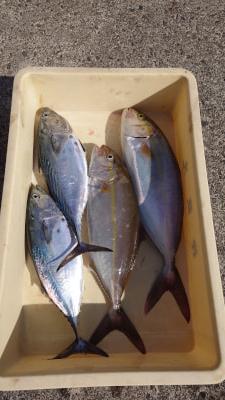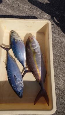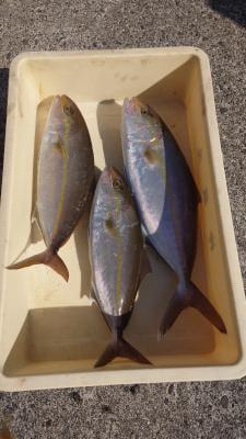 コメント: 落とし込みに出船‼️カンパチ、ヤイトなどまずまずの釣果でした。バラシもたくさんありました。まだまだ釣れそうですョ‼️明日 明後日は天気悪そうですご予約のお客様には出船、中止はこちらから連絡させて頂きます