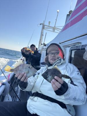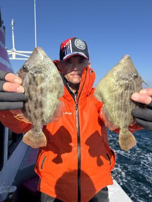 コメント:今日はカワハギ釣りに出船してきました🎣 竿頭 14匹 次頭 12匹 でした 天気は良かったですが波か残ってて、釣りにくい状況でしたが、楽しんで頂きありがとうございました😄明日も出船します。 出船情報