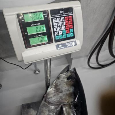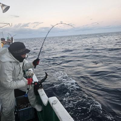 コメント: キハダふかせ出船しました。キハダの反応出てくるが潮激流で流しにくかったです😅朝の一流し目でHITキハダ42kg上がりました😁明日もキハダ予定です空きあるのでよろしくお願いします