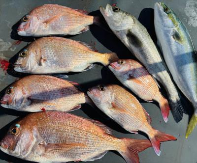 マダイ 6匹 ハマチ 1匹 セイゴ 1匹