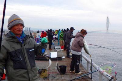 今日も朝から小アジサイズのマアジが大量にわいています!大阪側の先端の方では、20a前半サイズの小アジも少し混じっていたそうです〜!