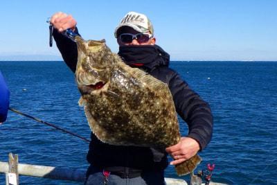 ヒラメ60aが釣れました! 先端手前・大阪側 のませサビキにて
