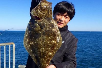 ヒラメ57aが釣れました! 中央付近・大阪側 のませサビキにて