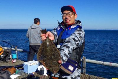ヒラメ47aが釣れました! 先端手前・大阪側 のませサビキにて