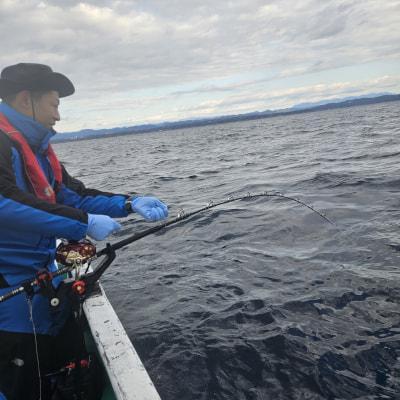 コメント: キハダふかせ出船しました。昼まで流せるか心配しまたが思ったより天気良かったですキハダなくカツオ5.3kgだけでした。明日から悪天候のため休みます