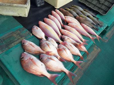 コメント: オキアミ五目釣り出船!今日はマダイもイトヨリも良く釣れました。明日から天気悪く北西の風が強いよーです、天気良ければ出船しますのでヨロシクお願いします。🙇