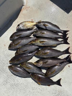 コメント:伝馬船釣果、良型のイサギ、グレが釣れてました。