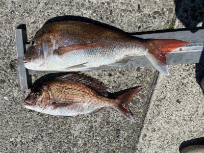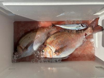 コメント:タイ釣り出船しました。 終わりまでポツポツ当たり船内9枚。 最大69cmでした。 明日も出船します。