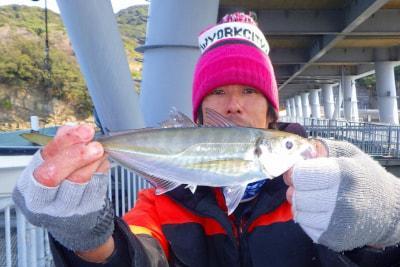 展望デッキ下の大阪側で、25〜20aサイズのマアジがよく釣れています!小さめのマサバもよく釣れています〜!