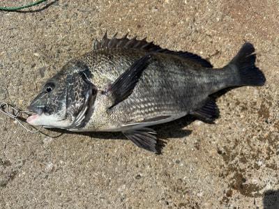 朝にエビ撒き釣りで48cmのハネが釣れました。