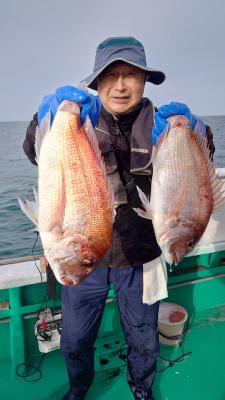 コメント: オキアミの五目釣りに出船しました。マダイ40〜56センチ3枚イサギなどの釣果でした。そろそろイサギ始めますので宜しくお願いします。
