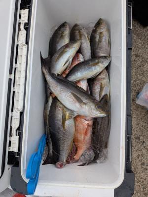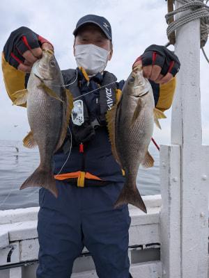 コメント:フカセ釣り釣果です!今日は下り潮、マダイ77p〜食べごろサイズ、イサキ、ハゲ、ガシラが釣れました✌毎日変わる潮に翻弄されてます😢海上はシラス追いかけてる青物がバシャバシャと賑やかですが・・・