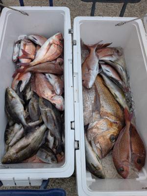 コメント:フカセ釣り釣果です!んー!!潮が動かず💦でもイサキはいつものように当たりあり!+本日はいつもよりマダイ84p〜食べごろサイズが釣れました✌