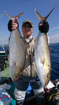 カンパチ | 50〜72cm | 9匹 | 落とし込み | 活けアジ | |
