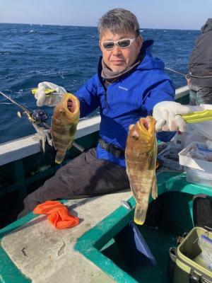 | オニカサゴ、カサゴ五目釣りに出船しました。 底物釣りでオニカサゴ5匹、アヤメカサゴ、レンコダイ、青ハタ2匹! 明日 オキアミ五目釣りのご予約お待ちしてます。 |