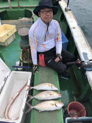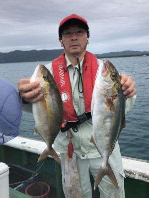 カンパチ | 44〜55cm | 12匹 | 落とし込み | 活けアジ |