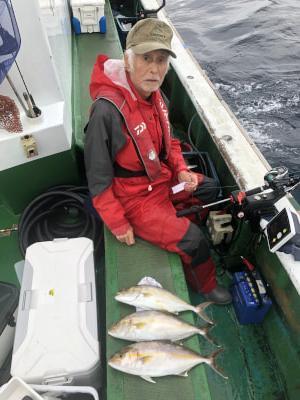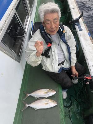 カンパチ | 46〜55cm | 11匹 | 落とし込み | 活けアジ |