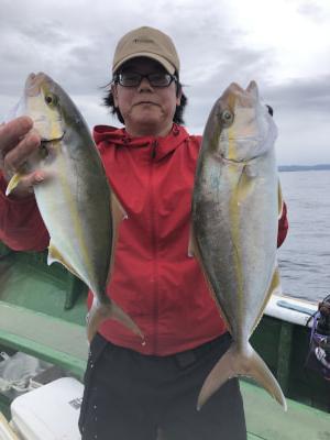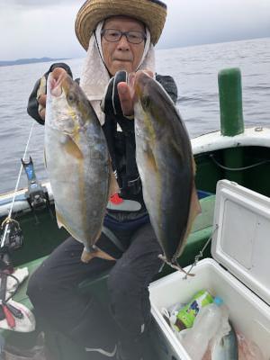 カンパチ | 43〜54cm | 9匹 | 落とし込み | 活けアジ | |