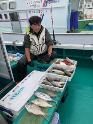 オキアミ五目釣りに出船しました。 メイチダイ2匹、キハダ1匹、イサギ30匹、チダイ20匹、カワハギ、ハマチ!