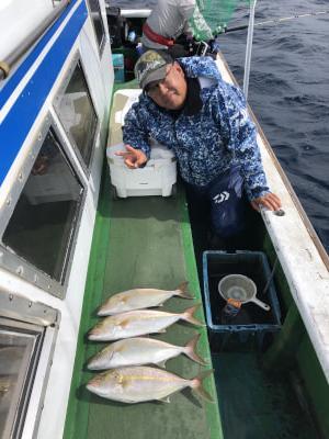 カンパチ | 41〜55cm | 16匹 | 落とし込み | 活けアジ |